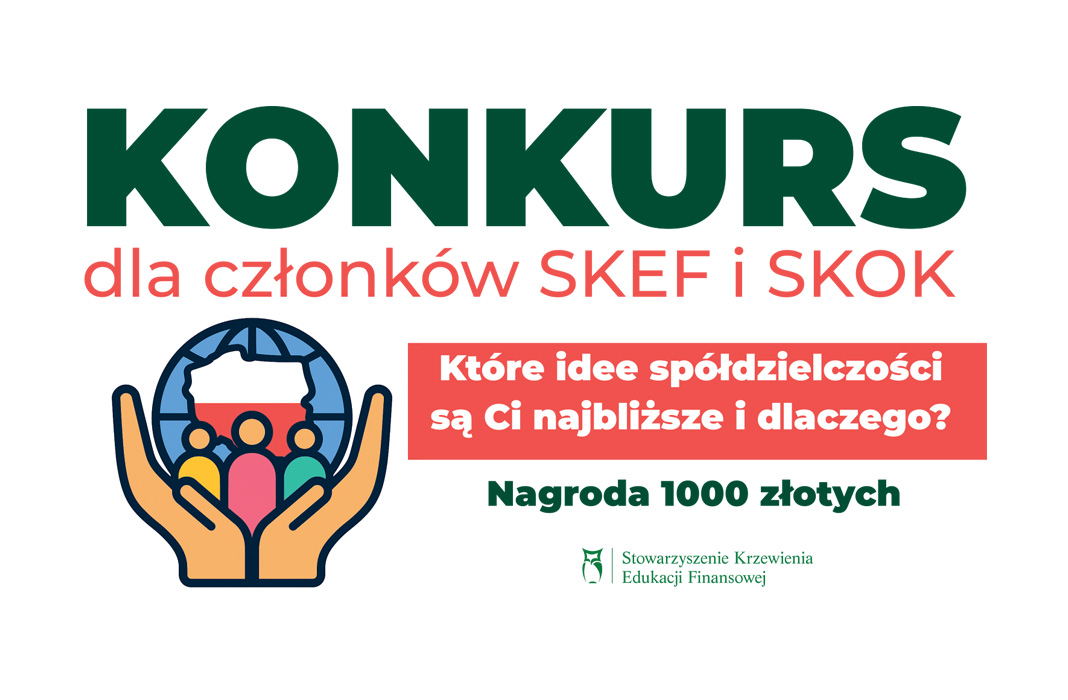 Wychodząc naprzeciw tym oczekiwaniom zapraszamy Państwa, jako Członków Stowarzyszenia Krzewienia Edukacji Finansowej, będących jednocześnie Członkami Spółdzielczych Kas Oszczędnościowo-Kredytowych do udziału w konkursie poświęconemu spółdzielczości „Które idee spółdzielczości są Ci najbliższe i dlaczego?”